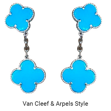 Сережки в стилі Van Cleef & Arpels Alhambra, біле золото, бірюза! ~ DCDMRKR ~!