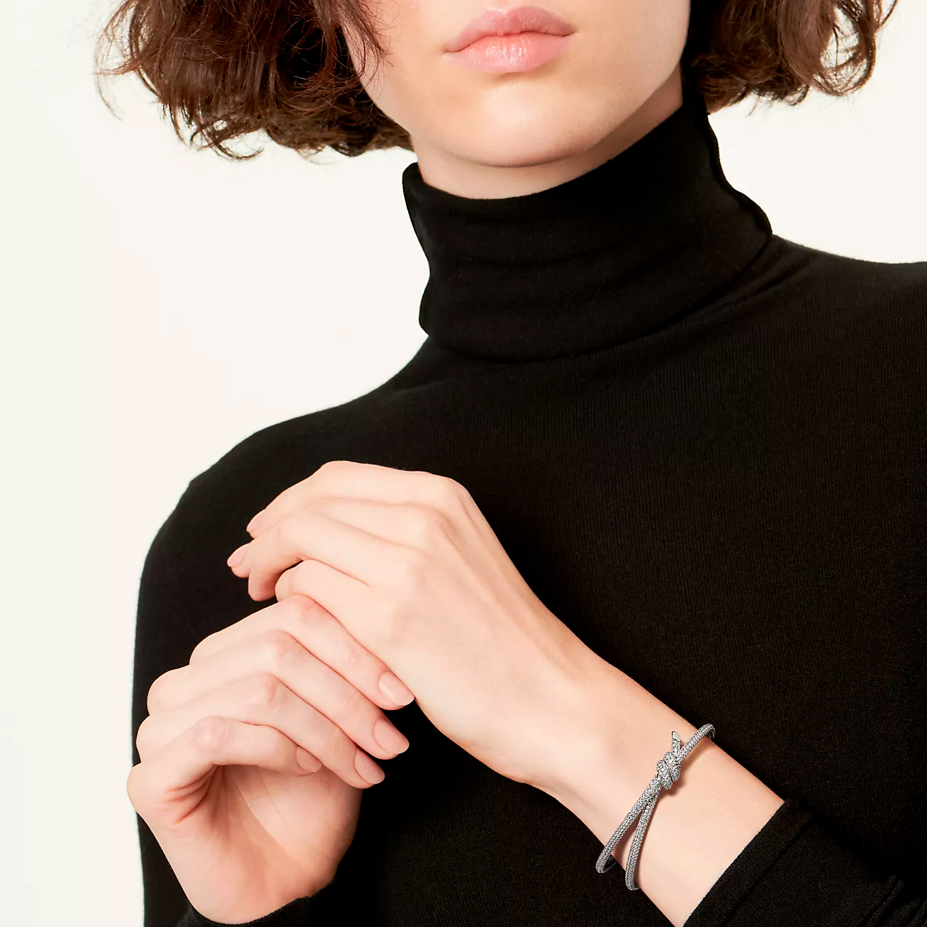 Опис Браслет Tiffany Knot Double Row, біле золото, діаманти