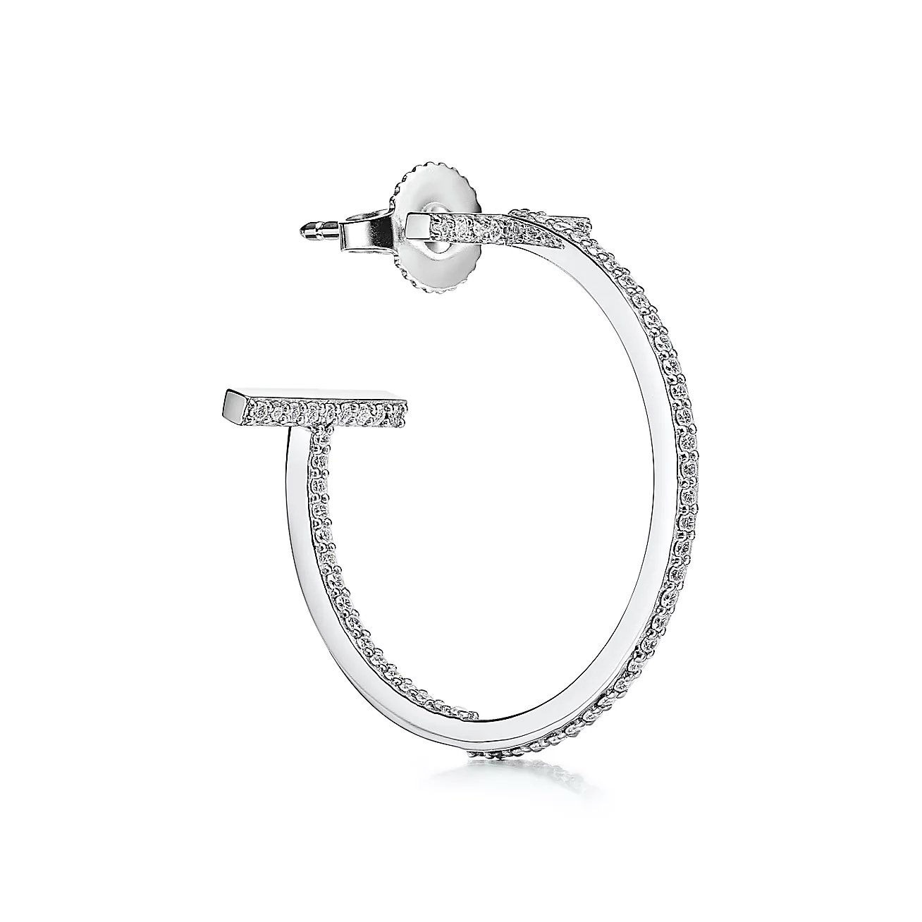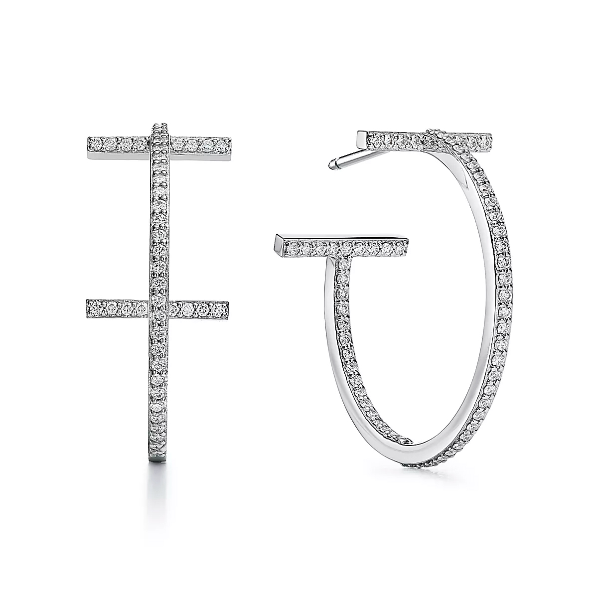 Опис Сережки Tiffany T Diamond Hoop, біле золото, діаманти
