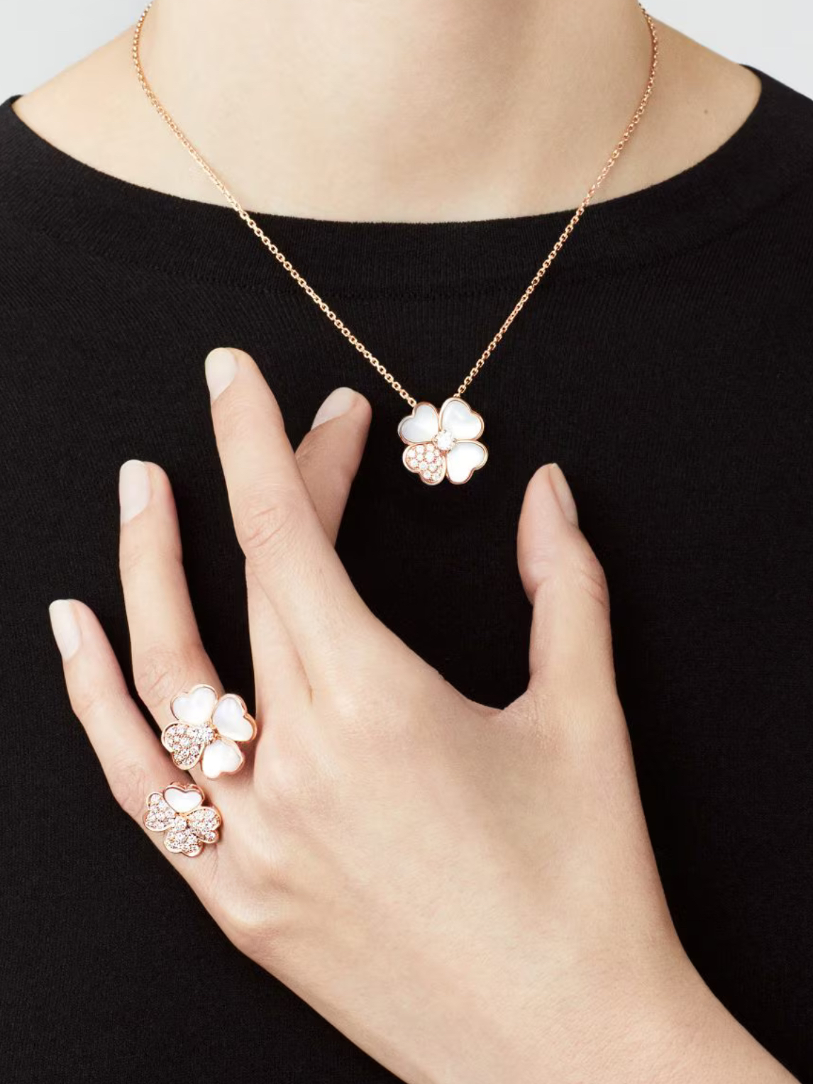 Опис Підвіска Van Cleef & Arpels Flowers, розове золото, діаманті, перламутр