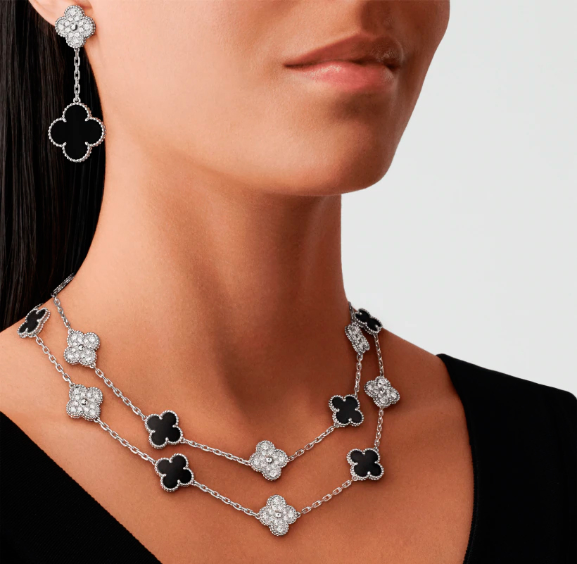 Опис Сережки Van Cleef & Arpels Magic Alhambra, біле золото, діаманті, воникс