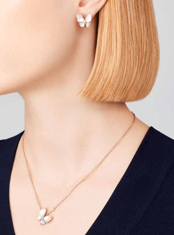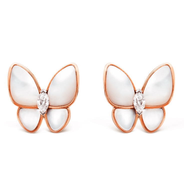 Опис Сережки Van Cleef & Arpels Two Butterfly, розове золото, перламутр, діаманті