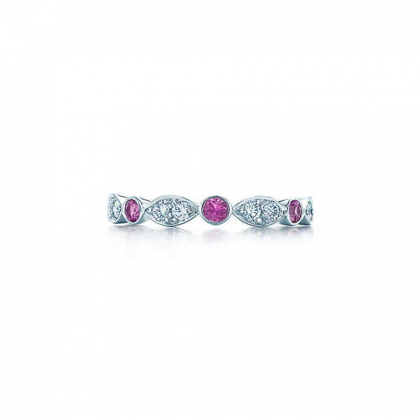 Платина з круглими рожевими сапфірами та круглими діамантами.