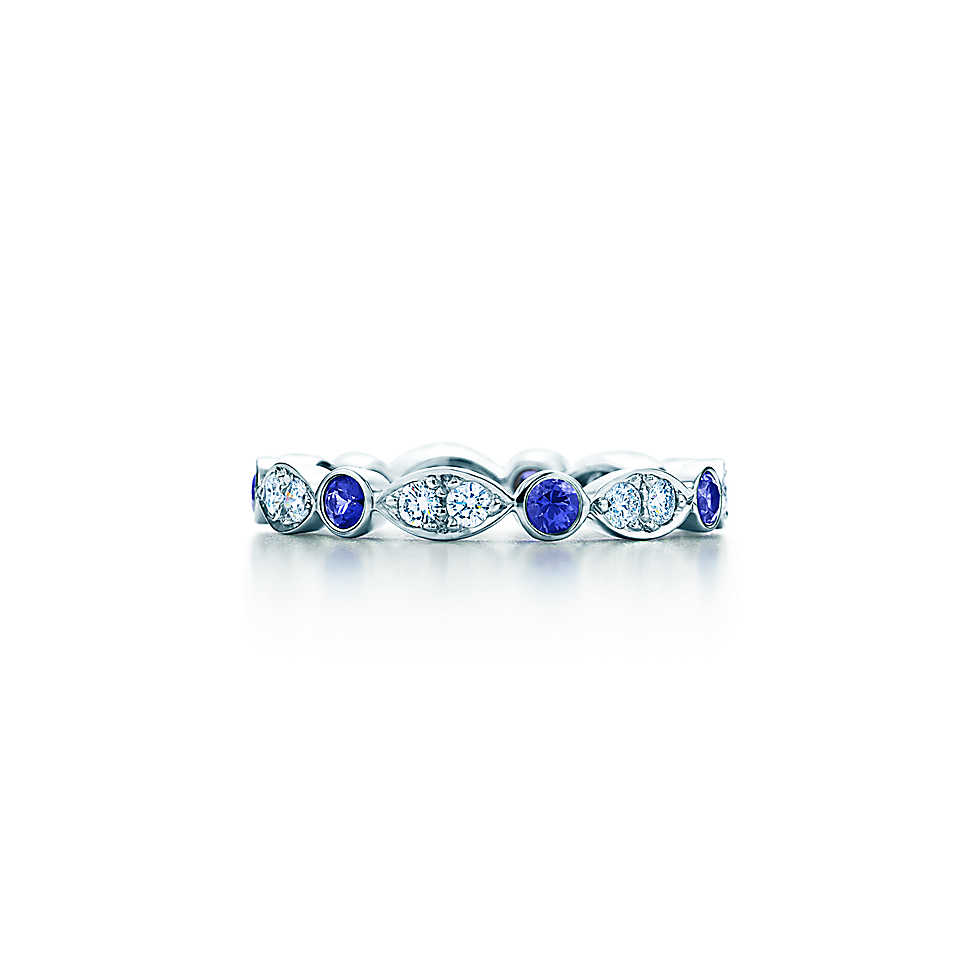 Каблучка Tiffany Jazz, платина, діаманти, сапфіри (19287068)