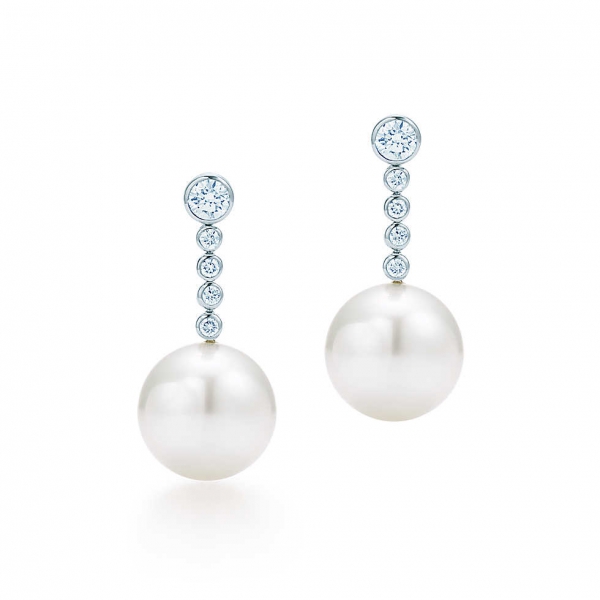 Сережки Tiffany Jazz ref: 31177154 із платини з культивованими перлами Південних морів та круглими діамантами.