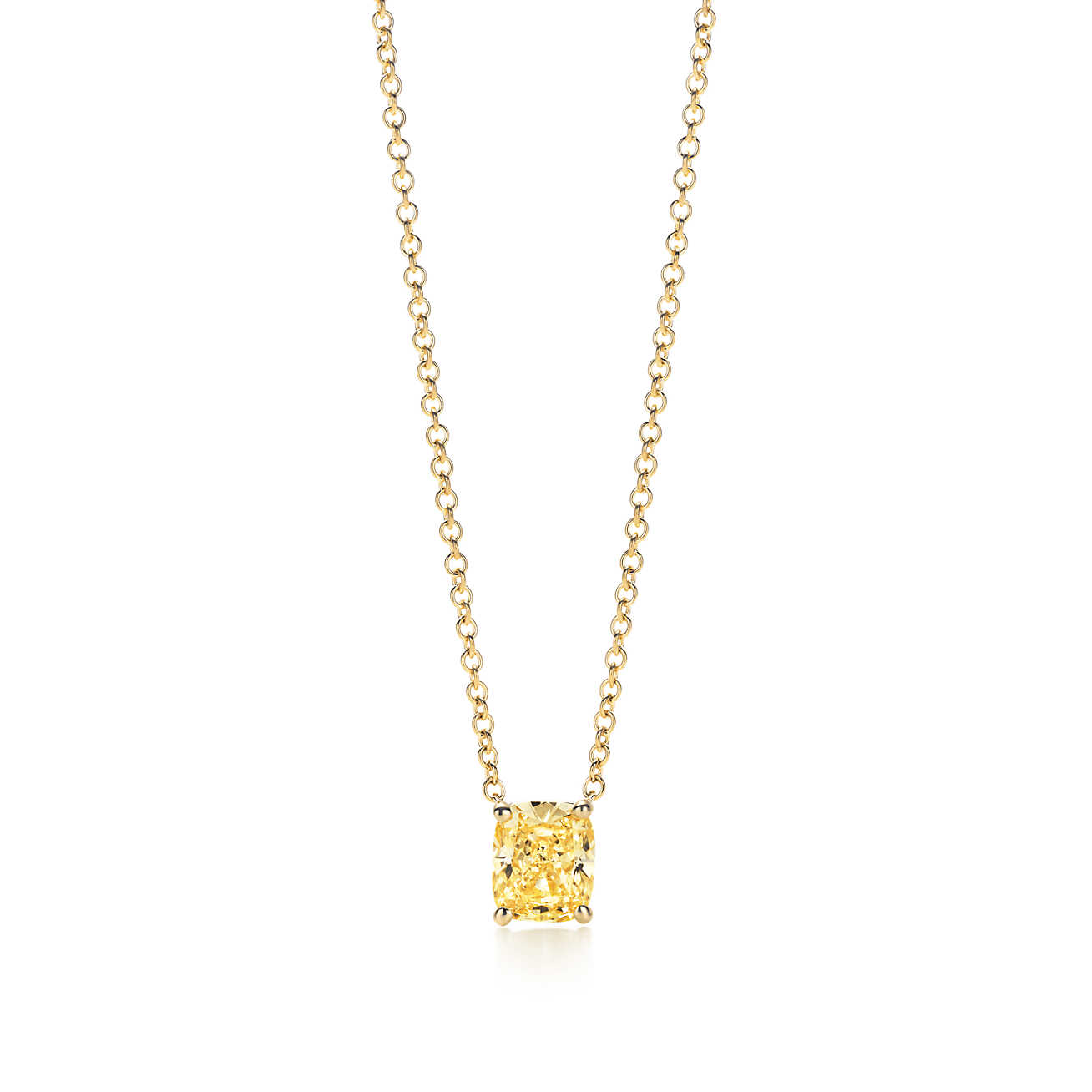 Сліпучий жовтий діамант Tiffany сяє на ланцюжку з 18-каратного золота, як сонце. На ланцюжку завдовжки 40,5 див.