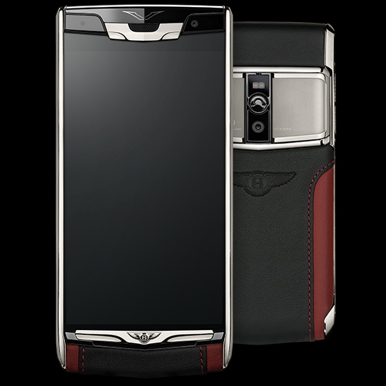 - Задня панель телефону з тисненим логотипом Bentley, створена за мотивами культових елементів обробки підголівників Bentley
