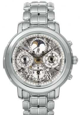 Jules Audemars Grand Complication Limited — це оригінальний годинник від бренду Audemars Piguet Jules Audemars референс 26023PT.OO.1138PT.01 створений з урахуванням кращих традицій годинникового мистецтва, у яких Тип калібру механіка з автопідзаводом, Діаметр, мм 42, Матеріал корпусу платина, буде ідеальним вибором для тих, хто цінує точність, стиль та якість, підтверджену часом, стане практичним інструментом та важливим елементом вашого іміджу Jules Audemars Grand Complication Limited мають представлені в інтернет-магазині Luxgroups за найкращою ціною з можливістю купити в Україні. Кваліфікована консультація по моделі годинника Jules Audemars Grand Complication Limited 26023PT.OO.1138PT.01.