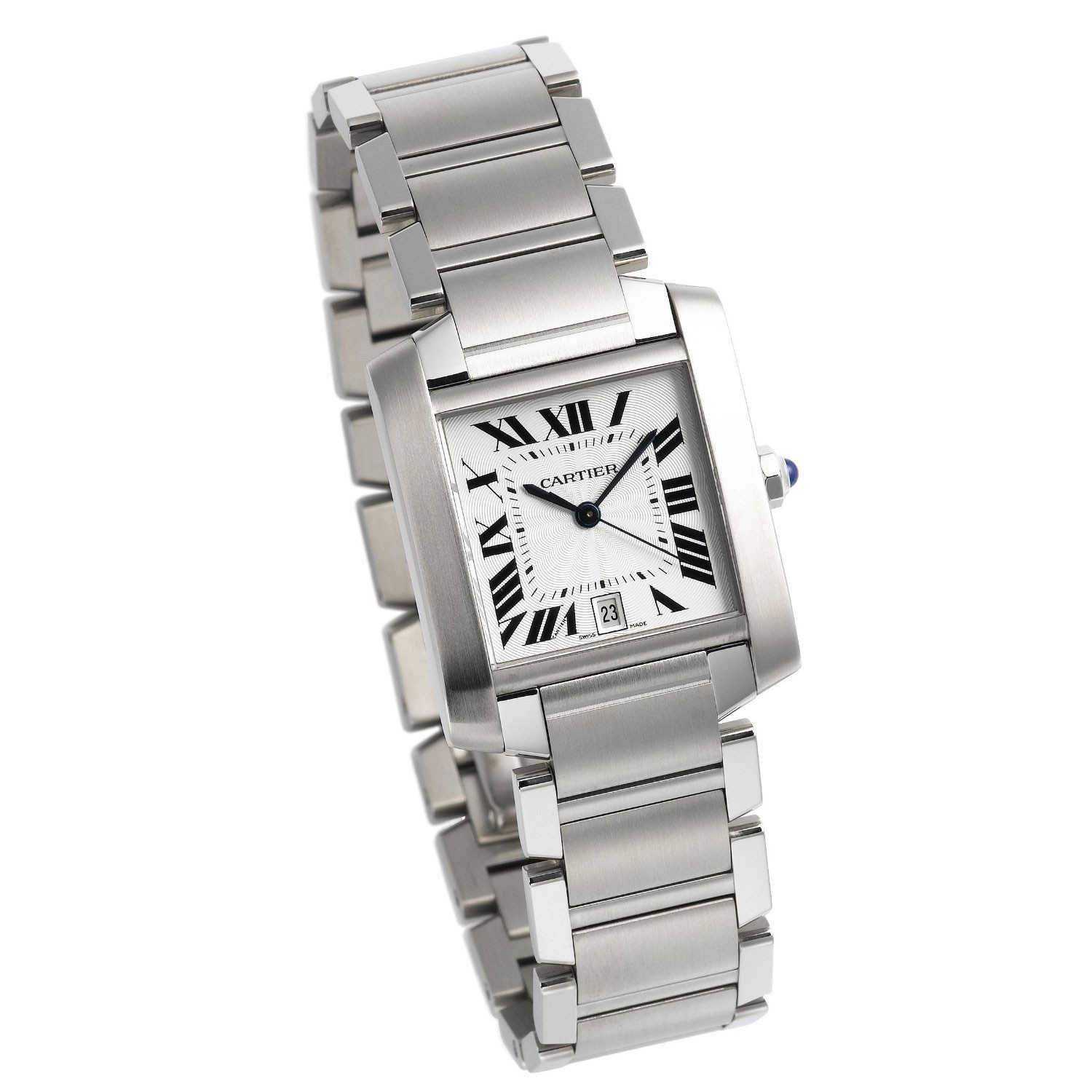 Cartier Watch Tank Francaise — це оригінальний годинник від бренду Cartier Tank референс W51002Q3 створений з урахуванням кращих традицій годинникового мистецтва, у яких Тип калібру механіка з автопідзаводом, Діаметр, мм 28, Матеріал корпусу нержавіюча сталь, буде ідеальним вибором для тих, хто цінує точність, стиль та якість, підтверджену часом, стане практичним інструментом та важливим елементом вашого іміджу Cartier Watch Tank Francaise мають представлені в інтернет-магазині Luxgroups за найкращою ціною з можливістю купити в Україні. Кваліфікована консультація по моделі годинника Cartier Watch Tank Francaise W51002Q3.