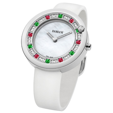 Годинник Damiani Belle Epoque біле золото, діаманти, смарагди, рубіни (30014561)
