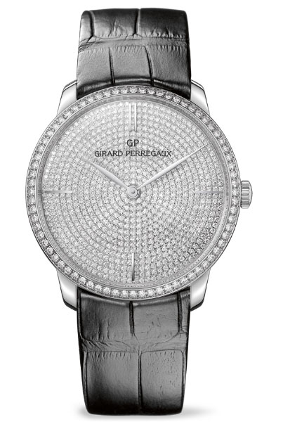 Циферблат з 713 діамантів (~2.97 carats). Механізм з автопідзаводом, калібру girard-perregaux 3300-0066, 26 каменів, 28800 напівколивань на годину, запас ходу 46 годин. Ремінець зі шкіри алігатора з класичною застібкою з білого золота, інкрустованої 22 діамантами.