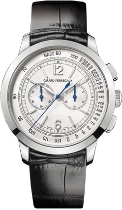Girard-Perregaux: хронограф 1966 – стильний годинник у кращих традиціях годинної справи. Механіка з автопідзаводом, колонне колесо хронографа, 38 дорогоцінного каміння, частота коливання балансу 28,800 пк/год. Запас ходу – 36 годин. Механізм зібраний із 304 частин, розроблений та виготовлений мануфактурою бренду. Корпус - біле золото (кожний вигин поверхні, вушка, кнопки, що управляють, головка підзаводу - ретельно пророблені, завдяки чому годинники ідеально лягають на руку) сапфірове скло циферблата, сапфірове вікно задньої кришки корпусу.