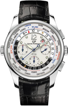 Годинник від швейцарської компанії GIRARD-PERREGAUX для бізнесменів та ділових людей. ww.tc Financial – годинник з часовими поясами, що відображає час у 4 найголовніших світових фінансових точках. Ця модель поєднує два світи: світ фінансів та світ годинника. Цей годинник дозволяє з легкістю читати час у 24 містах світу, на кожну годину по місту. Абревіатура ww.tc означає – World Wide Time Control. Ця функція ідеальна для мандрівників та бізнесменів. Вперше годинник відображає не лише час у різних містах світу, а й на головних біржах, у 4 головних фінансових точках: Гонг-Конг, Лондон, Нью-Йорк та Токіо. Система механізму заснована на двох рухомих дисках навколо циферблату: кільце з позначкою 24 годин синхронізоване з годинниковою стрілкою. Другий безель регулюється за допомогою корони, встановленої на позначці 9 годин, і показує назви всіх 24 міст і час, у який відкриті біржі в 4х раніше перерахованих містах. Червона точка на другому безелеві рухається проти годинникової стрілки і коли вона встає навпроти позначки однієї з бірж, це означає, що на даний момент вона працює і торги відкриті. Корпус виготовлений із сталі, діаметр становить 43 міліметри. Механізм годинника- автоматичний, GP033C0, калібру 13'''. Частота коливань складає 28800 (4 Герца). Запас енергії становить 46 годин. Механізм спроектований та виготовлений на фабриці GIRARD-PERREGAUX. Скло сапфірове, антивідблиску. Ремінець виготовлений із крокодилової шкіри.