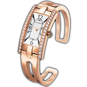 Корпус рожевого золота 19,5 х 38,5 мм. Циферблат білого перламутру з гільйоше.