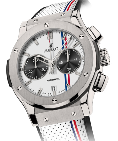 Компанія Hublot продовжує, свої подальші кроки в зміцненні його зв'язків з автомобільною промисловістю та ексклюзивним світом класичних автомобілів! щорічно з 2000 року. Автомобілі та годинник обидва належать до одного світу: мрії та іграшки \", пояснює Жан-Клод Бівер, голова компанії Hublot, і власник класичних автомобілів, включаючи Ferrari 275 GT4 і Ford GT40. Щоб відсвяткувати перший рік цього партнерства в 2013 році, компанія представляє Classic Fusion Chronograph Tour Auto 45mm, яка вийде обмеженим тиражем всього в 100 примірників.Корпус новинки виготовлений з титану - легкого, міцного сплаву стійкого до корозії. HUB1143 з автопідзаводом, складається з 280 компонентів, включаючи 59 каменів при частоті 28600 підлогу/годину і мають запас ходу в 42 години. .