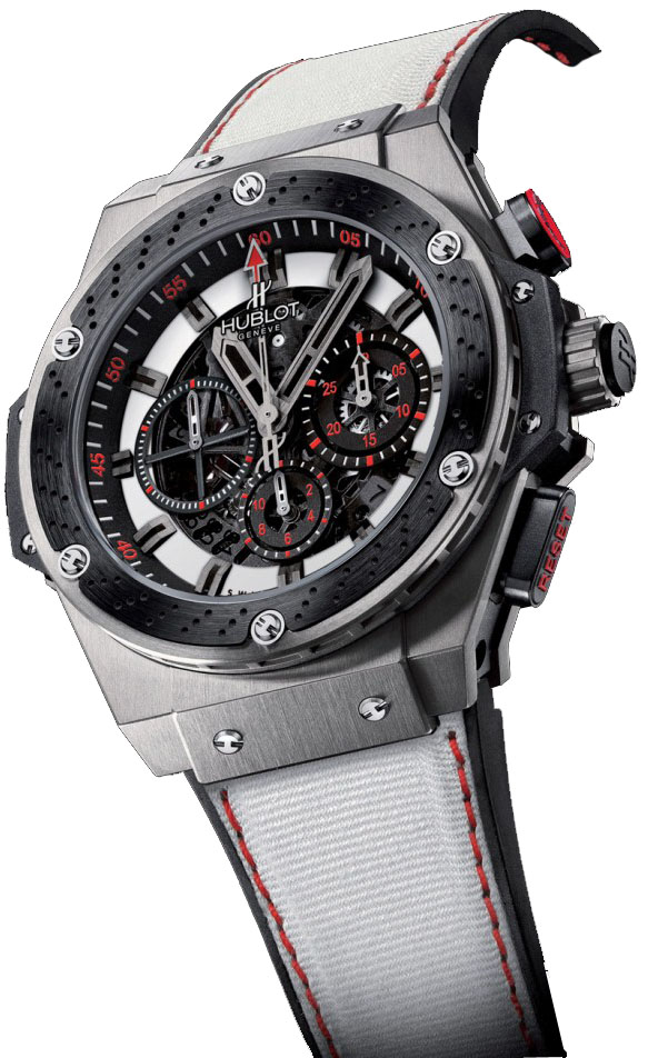 За день до Гран-прі Гонок Японської Формули 1 компанія Hublot виступає офіційним хронометристом змагань, представила новинку F1™ King Power Suzuka. Свою назву годинник отримав невипадково: Судзука (Suzuka) – унікальна траса у формі «вісімки», на якій проводяться перегони, що входять до чемпіонату Формули-1 Гран-прі Японії. Хронограф виконаний у кольорах національного прапора Японії – білому та червоному. Безель керамічний. На ньому багато дрібних отворів, що робить його схожим на гальмівний диск автомобіля. До речі, цим годинник схожий на модель F1 King Power Tourbillon. Як і у турбійону, ремінець F1 King Power Suzuka виготовлений з гуми та синтетичного матеріалу Nomex, який використовується при виготовленні костюмів для гонщиків Формули 1. Тираж моделі – 250 екземплярів. На прес-конференції представники Hublot оголосили, що кошти від продажу одного екземпляра годинника F1 King Power Suzuka (під серійним номером «0 з 250») будуть направлені в благодійний фонд KIDS EARTH FUND(KEF).