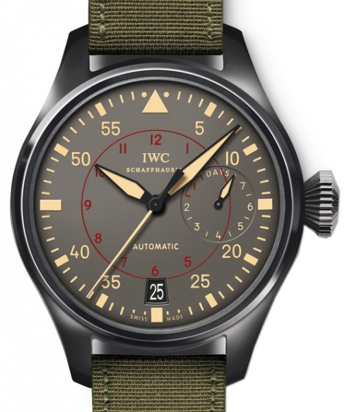 На майбутньому цього місяця женевській годинній виставці SIHH-2012 швейцарська годинникова компанія International Watch Company (IWC) представить п'ять нових моделей у пілотській колекції. Однією з цих моделей, інформація про яку з'явилася в Мережі є Pilot Chronograph Top Gun Miramar. Круглий корпус, діаметром 48 мм, виготовлений із сірої кераміки (zirconium oxide), яка є практично не подряпаною. Задня кришка корпусу, заводна головка та кнопки хронографа виконані з титану. Сапфірова скло на передній стороні корпусу. Циферблат антрацитового кольору з годинниковими індексами, арабськими цифрами та стрілками, покритими люмінесцентним складом бежевого кольору. Модель оснащена новим мануфактурним автоматичним механізмом 89365 (на відміну від калібру ETA Valjoux 7750, який раніше застосовувався в пілотських хронографах бренду), з 168-годинним запасом ходу, функціями індикації годин, хвилин (за допомогою відповідних боків на 12 годинах), дати (в секторній апертурі на 3 годинах), а також з flyback-хронографом. Тканинний ремінець кольору хакі з титановою застібкою.