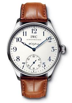 Без американця Ф.А. Джонса (FA Jones) не було б IWC. Зокрема, однією з класичних моделей Portuguese FA Jones – на білому циферблаті із великими арабськими цифрами розташований додатковий секундний циферблат. Серія обмежена – 3 000 моделей! Клопус нержавіючої сталі 43 мм. Циферблат білий. Браслети шкіряні, коричневі. Скло - сапфір.