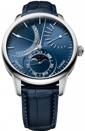 Механічний годинник з автопідзаводом. Індикатор запасу ходу. Ретроградний вказівник дати. Індикація дня тижня. Фази Місяця. Корпус годинника виконаний з нержавіючої сталі. Ремінь зі шкіри крокодила. Діаметр корпусу 43 мм.