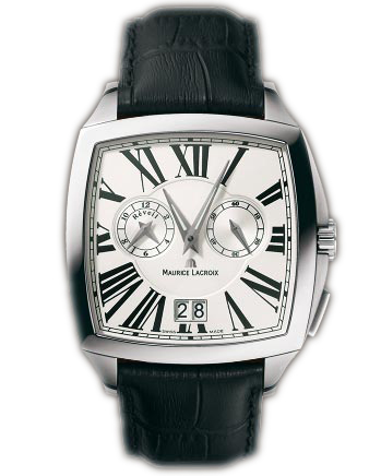 Maurice Lacroix Watch Miros Coussin Reveil (SS / Silver / Black Leather)
