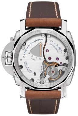 Корпус діаметром 47 мм традиційної для колекції форми Luminor виготовлений із нержавіючої сталі. На чорному циферблаті виділяються бежеві часові індекси та стрілки з люмінесцентним покриттям – циферблат складається з двох суміщених шарів, на нижній із яких нанесений люмінесцентний матеріал Super-LumiNova® для підсвічування цифр та годинникових маркерів. На 9 годинах розташований бічний секундний циферблат, на 3 годинах апертура дати. На задній кришці, а, точніше, на зовнішній стороні калібру, знаходиться стрілочний покажчик запасу ходу.