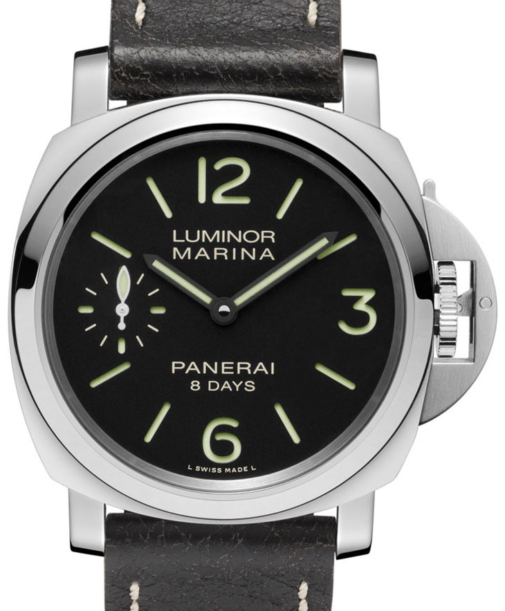 Модель Luminor Marina 8 Days (PAM00510) доповнює ремінець із чорної шкіри. Цей годинник входить до колекції Historic Collection.