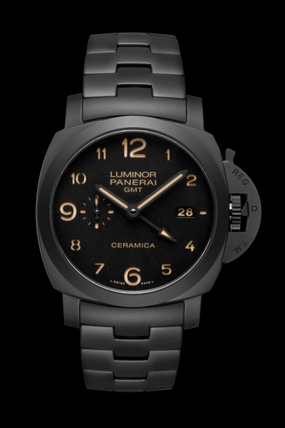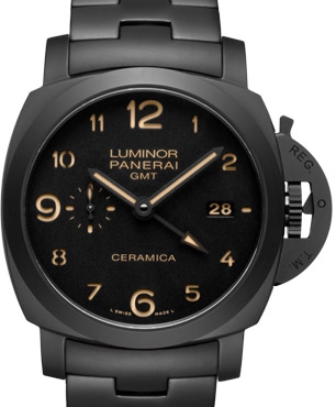 Однією з новинок, представлених брендом Officine Panerai на женевській виставці Salon International de la Haute Horlogerie (SIHH-2012), є модель PAM 438 Tuttonero GMT (Ceramic). Корпус Luminor 1950, виготовлений із матово-чорної кераміки, діаметром 44 мм, водонепроникний до 100 метрів. Постачається на матово-чорному браслеті з кераміки. Сапфірове скло на лицьовій стороні корпусу та на його задній кришці. Циферблат чорний, з арабськими цифрами та стрілками з люмінесцентним покриттям. Модель оснащена мануфактурним автоматичним механізмом Panerai P.9001, з чорним гальванічним покриттям, 72-годинним запасом ходу, функціями індикації годин, хвилин (за допомогою відповідних центральних стрілок), секунд (на малому боковому циферблаті на 9 годин) годинах) та часу другого часового поясу (за допомогою спеціальної центральної стрілки).