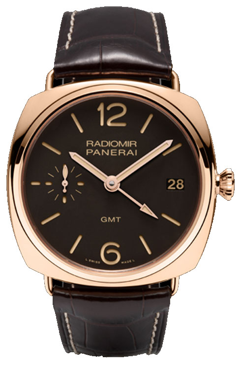 Radiomir 3 Days GMT Oro Rosso поставляються на коричневому ремінці зі шкіри алігатора
