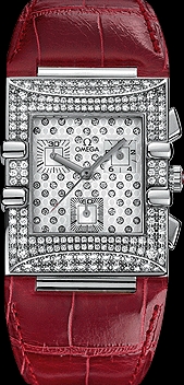 Випукло, стійке до подряпин сапфірове скло. Корпус Сталь. Циферблат: білий перламутровий з діамантами. Калібр: Omega 5200. Кварцовий годинниковий механізм із родієвим покриттям. Годинна, хвилинна та мала секундна стрілки, центральна стрілка хронографа, підсумовуючий лічильник на 12 годин 30 хвилин та 1/10 секунди. Запас ходу: 46 місяців. Особливості: Хронограф; Діаманти; Мала секундна стрілка.