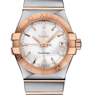 Надзвичайно ефектний дизайн годинника OMEGA Constellation пройшов перевірку часом. Його характерною особливістю стали знамениті дужки з боків годинного корпусу та вражаючі циферблати. Ця модель має сріблястий циферблат з віконцем вказівника дати в положенні «3 години» та стійким до подряпин сапфіровим склом. Безель із 18-каратного рожевого золота з вигравіруваними римськими цифрами закріплений на корпусі діаметром 35 мм із нержавіючої сталі, який доповнений браслетом із нержавіючої сталі та 18-каратного рожевого золота. Випукло, стійке до подряпин сапфірове скло з покриттям антивідблиску зсередини. У цьому годиннику використовується високоточний кварцовий механізм OMEGA, калібр 1532. Кварцовий годинниковий механізм з родієвим покриттям. Індикатор необхідності заміни живлення. Запас ходу: 25 місяців
