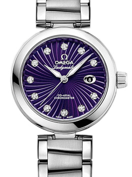 У 2013 році мануфактура оновила циферблати на годинник Ladymatic, які втілюють у життя кожної жінки граціозність та елегантність. Цей годинник – справжній подарунок для прекрасної половини людства, що мріє про високоточний механічний годинник із сучасним модним дизайном. Під хвилеподібним візерунком полірованого корпусного кільця можна побачити ще одне кільце – з кераміки. Годинник розміром 34 мм, корпус виконаний із нержавіючої сталі. Заводна головка прикрашена діамантом фірмового ограновування або логотипом Omega. Крізь сапфірове скло зворотного боку можна розглянути механізм годинника. Механізм годинника з автопідзаводом, калібру Omega 8520/8521 із запасом ходу 50 годин. Всі годинники серії Ladymatic є офіційно сертифікованими хронометрами, що свідчить про бездоганну точність ходу. Циферблат прикрашений візерунком нагадує промені, що розходяться з центру. Циферблат також може бути прикрашений 11 діамантами замість годинникових міток має яскраво-фіолетовий колір. Апертура дати розміщена на позиції 3-х годин. Стрілки виконані зі сталі та покриті білим складом Суперлюмінова, що дозволяє дізнатися час за будь-якого освітлення. Годинник представлений з сатиновим ремінцем, з розкладною застібкою має особливу запатентовану компанією Omega конструкцію, що складається з трьох рядів ланок.