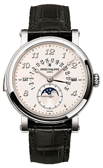 Швейцарська годинникова компанія Patek Philippe представила свою модель Grand Complications 5213 Perpetual calendar – Minute repeater – Тourbillon Platinum, дизайн якої виконаний в елегантному білому кольорі. Модель оснащена швейцарським механізмом Caliber RTO 27 PS QR, з функціями індикації годин, хвилин (за допомогою відповідних центральних стрілок) маленькою секундною стрілкою поєднаної з індикатор Фаз Місяця (у положенні на 6 годин) стрілки з червоним наконечником дати в центральній положенні на 9 годин), місяці (у положенні на 3 години) із запасом ходу 38-48 годин. Що найголовніше годинник має найскладніші годинні функції Вічний календар, Хвилинний репітир. Вічний календар включає механізм, що самовстановлюється на різні кількості днів на місяці - 28, 30 або 31. У Вічному календарі також міститься індикатор високосного року. Здійснює один оборот на рік, місячний індикатор цього годинника з'єднаний з шестернею, розділеною на чотири сектори, один з яких показує високосний рік. Ця шестерня робить повний обіг за чотири роки. Таким чином, без втручання людини, Вічний календар точно вказує дату, день тижня, місяць, фази місяця та високосний рік. Модель витончена та підійде справжнім любителям високого вартового мистецтва.
