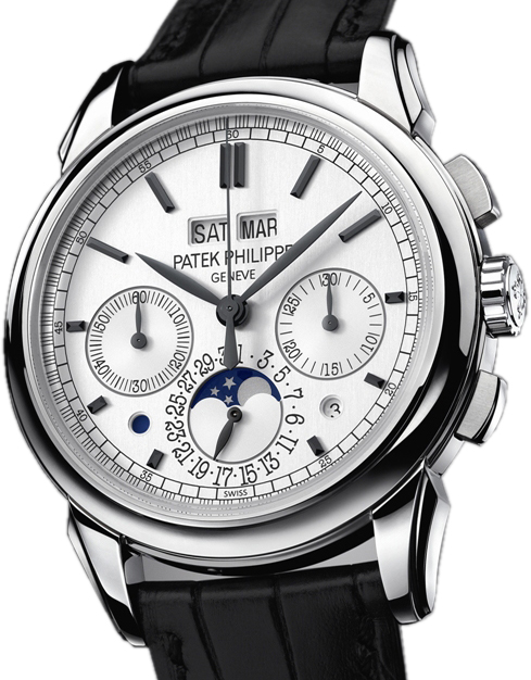 Компанія Patek Philippe стала єдиною годинниковою фірмою, всі, без винятку, години якої, відзначаються найвищим знаком вартової досконалості - Женевським тавром. Годинник далеко не всіх швейцарських брендів удостоюється цього бажаного знака. Особливу увагу приділяє Patek Philippe дизайну своїх виробів. Кожна з годинникових колекцій фірми заснована на точно вивірених, властивих тільки їй, естетичних принципах, що дозволяють годинникам залишатися сучасними, навіть якщо вони були зроблені кілька десятиліть тому. Безперечно, створена в 2011 році нова модель Perpetual Calendar Chronograph поповнити колекцію видатних годинників в історії бренду. Особливу увагу приковує до себе механізм із ручним заводом, калібру CH 29-535 PS Q на який можна помилуватися через прозоре скло на задній кришці. Калібр з ручним заводом CH 29-535 PS Q, складається з 456 деталей і зібраний на 33 рубінах, з частотою коливань балансу 28 800 пк/годину з запасом ходу від 55 до 65 годин. Сріблясто-опаловий циферблат, чорні мітки та стрілки із чорненого золота. Центральна годинна та хвилинна стрілка, маленька секундна стрілка на 9 годин. Центральна 12-годинна секундна стрілка хронографа, 30-хвилинний лічильник у положенні на 3 години. Індикатор дати та фази Місяця суміщений на 6 годин. Віконце дати та дня тижня у положенні на 12 годин. Між 4 та 5 годинами індикатор циклу високосного року, а між 7 та 8 годинами присутня індикація змін дня і ночі. Ремінець зі шкіри алігатора з розкладною застібкою із білого золота.