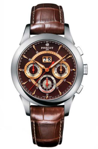 Perrelet Watch Chronograph Big Date — це оригінальний годинник від бренду Perrelet Classic Collection референс A1008/5 створений з урахуванням кращих традицій годинникового мистецтва, у яких Тип калібру механіка з автопідзаводом, Діаметр, мм 42, Матеріал корпусу нержавіюча сталь, буде ідеальним вибором для тих, хто цінує точність, стиль та якість, підтверджену часом, стане практичним інструментом та важливим елементом вашого іміджу Perrelet Watch Chronograph Big Date мають представлені в інтернет-магазині Luxgroups за найкращою ціною з можливістю купити в Україні. Кваліфікована консультація по моделі годинника Perrelet Watch Chronograph Big Date A1008/5.