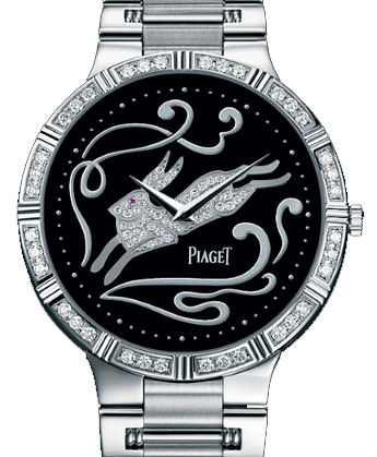 Ультратонкий корпус, витончено прикрашений обідок, гнучкий браслет, візерунок у вигляді подвійного ряду рельєфних форм – цей декор, що вже став доброю традицією Piaget, чудово поєднується з новими екзотичними елементами. Зображені на циферблаті годинника 12 символів китайського зіркового календаря вдало відтінюються виконаною із чорного онікса задньою стінкою. Ця модель прикрашена знаком Кролика: блиск прикрашають зображення діамантів надає їй неповторної вишуканості. Кролик з повагою ставиться до порядку, намагається уникнути проблем та адаптуватися до будь-якої ситуації.