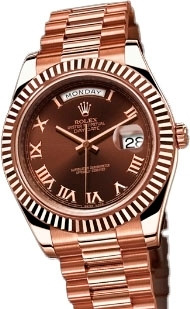 Rolex Day-Date II President Pink Gold - коричневий циферблат із рифленим безелем