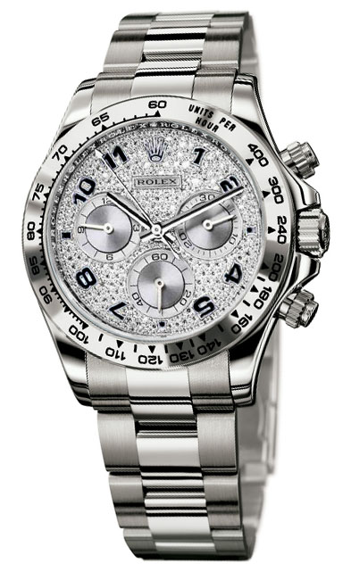 Rolex Watch Cosmograph Daytona White Gold Pave Diamond Dial