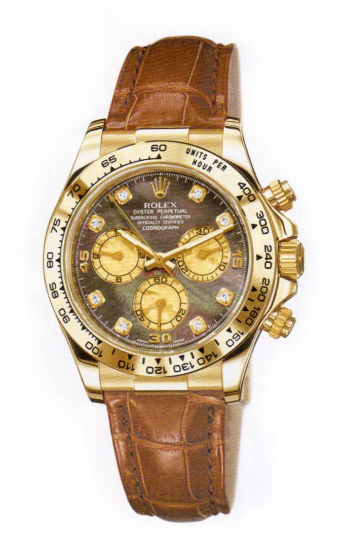Характеристики Rolex watches Daytona Yellow Gold - Leather Strap Dark Pearl Dial & Yellow pearl subdials Diamond