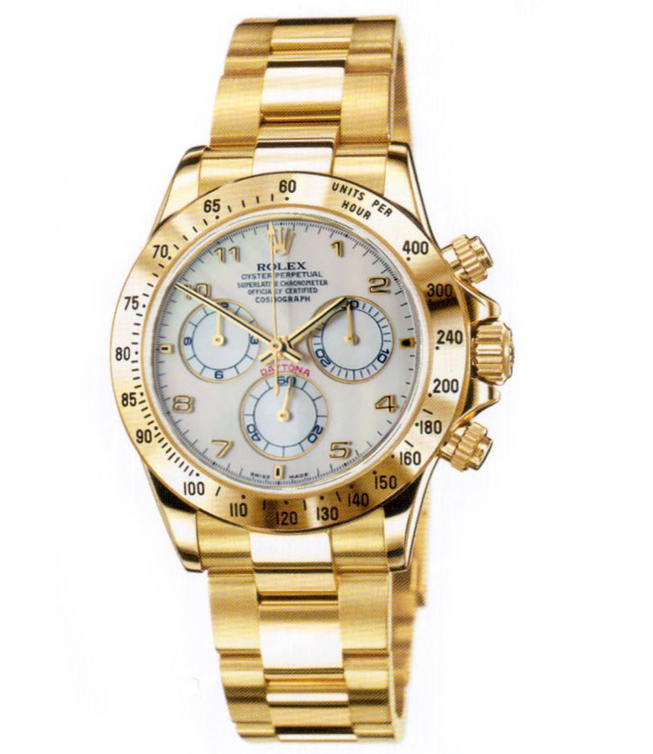 Характеристики Годинники Rolex Daytona Yellow Gold - Oysterlock Bracelet з перламутровим циферблатом