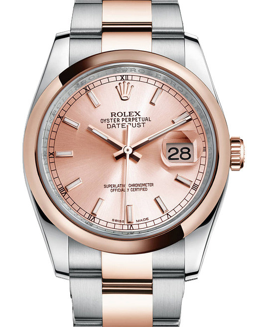 Характеристики Rolex Datejust 36 мм - сталь і золото, рожеве золото - куполоподібний безель - устричний