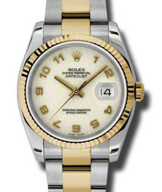 Характеристики Rolex Datejust 36 мм - сталь і золото, жовте золото - рифлений безель - устричний