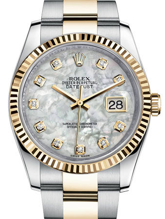 Характеристики Rolex Datejust 36 мм - сталь і золото, жовте золото - рифлений безель - устричний