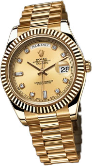 Rolex Day-Date II 41 мм, жовте золото, діаманти кольору шампанського