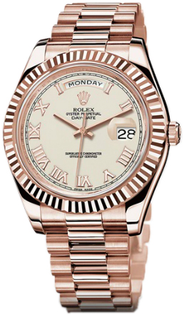 Rolex Day-Date II President Pink Gold - коричневий циферблат із рифленим безелем