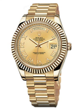 Жовте золото Rolex Day-Date II President з рифленим безелем