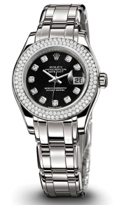 Округлі, гармонійні лінії як найвищий символ жіночності. Тут годинник Lady-Datejust Pearlmaster White Gold Masterpiece 116 Diamond Bezel 80299 представлений у виконанні з білого золота. Годинник Lady-Datejust Pearlmaster примітний своїми гармонійними, округлими лініями. Безель цієї моделі прикрашений 116 діамантами у два ряди, блиск яких посилюється м'яким сяйвом золота. Хронометр – сертифікація COSC. Механізм з автопідзаводом, Caliber 2235 на 31 камені із запасом ходу 42 години. Циферблат - чорний із 10 діамантами замість міток. Віконце дати з лупою знаходиться в положенні 3 годин. Браслет - Pearlmaster із білого золота 750 проби із застібкою Crownclasp.
