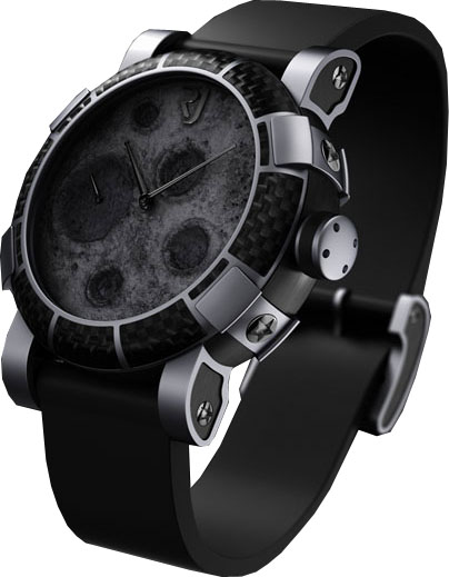 Місяць виявляє свій зворотний бік у цій містичній абсолютно темній композиції. Справжній місячний пил на циферблаті. Корпус із титану та сталі містить домішки металу легендарного Apollo XI. Вушка корпусу годинника виконані з чорної кераміки, в іншій версії використовується оксидний метал космічного корабля “Союз”