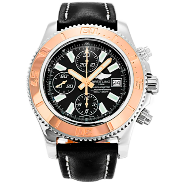 Breitling SuperOcean Chrono — це оригінальний годинник від бренду Breitling референс C13341 створений з урахуванням кращих традицій годинникового мистецтва, у яких Тип калібру механіка з автопідзаводом, Діаметр, мм 44, Матеріал корпусу нержавіюча сталь, рожеве золото, буде ідеальним вибором для тих, хто цінує точність, стиль та якість, підтверджену часом, стане практичним інструментом та важливим елементом вашого іміджу Breitling SuperOcean Chrono мають Браслет шкіра, Водонепроникність (м) 500, представлені в інтернет-магазині Luxgroups за найкращою ціною з можливістю купити в Україні. Кваліфікована консультація по моделі годинника Breitling SuperOcean Chrono C13341.