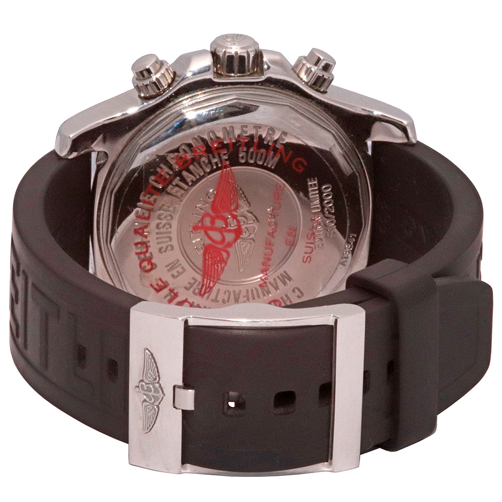 Breitling SuperOcean Chronograph — це оригінальний годинник від бренду Breitling референс A13341 створений з урахуванням кращих традицій годинникового мистецтва, у яких Тип калібру механіка з автопідзаводом, Діаметр, мм 44, Матеріал корпусу нержавіюча сталь, буде ідеальним вибором для тих, хто цінує точність, стиль та якість, підтверджену часом, стане практичним інструментом та важливим елементом вашого іміджу Breitling SuperOcean Chronograph мають Браслет каучук, Водонепроникність (м) 500, представлені в інтернет-магазині Luxgroups за найкращою ціною з можливістю купити в Україні. Кваліфікована консультація по моделі годинника Breitling SuperOcean Chronograph A13341.