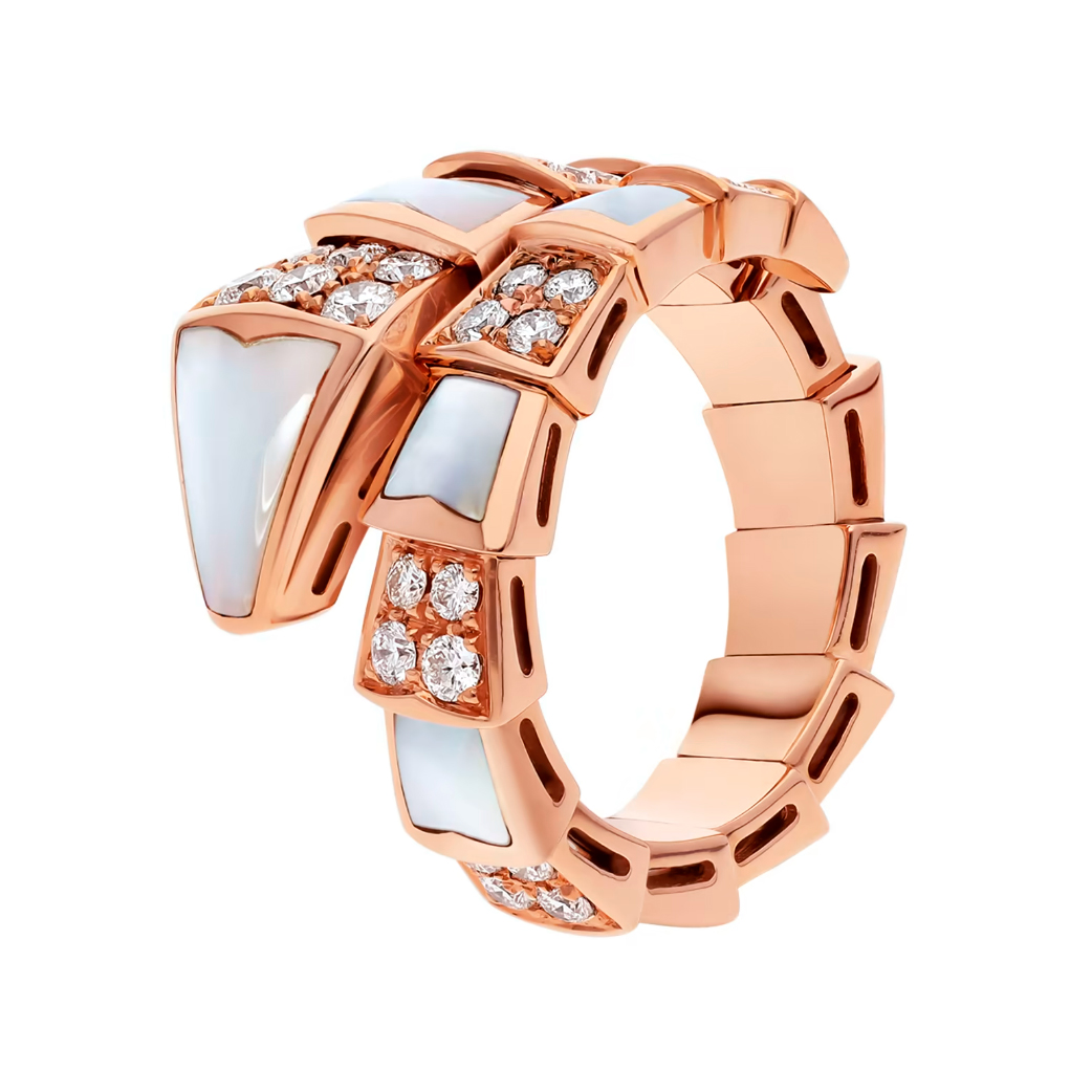 Каблучка Bvlgari Serpenti Viper, рожеве золото, діаманти, перламутр